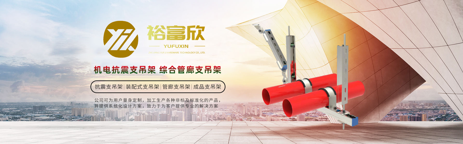 浙江裕富五金科技有限公司位于美麗的杭州臨安青山湖畔,注冊資金5000萬人民幣。是一家集研發、設計、制造、銷售、安裝、技術服務于一體的,專業從事抗震支吊架、管廊支吊架、綜合承重支吊架等,多功能、多元化的現代新興科技企業。 公司技術力量雄厚、設備齊全、工藝先進、管理體系高效完善,在注重產品設計、選材、結構工藝等細節基礎上,嚴格按照GB/T37267-2018、GB/T9978.1-2008等國家標準進行生產和管理,立足本土并扎根施工現場,多次調研測試并持續改進,產品通過了國家建筑工程質量監督檢驗中心的檢測,打造了“裕富欣”品牌。